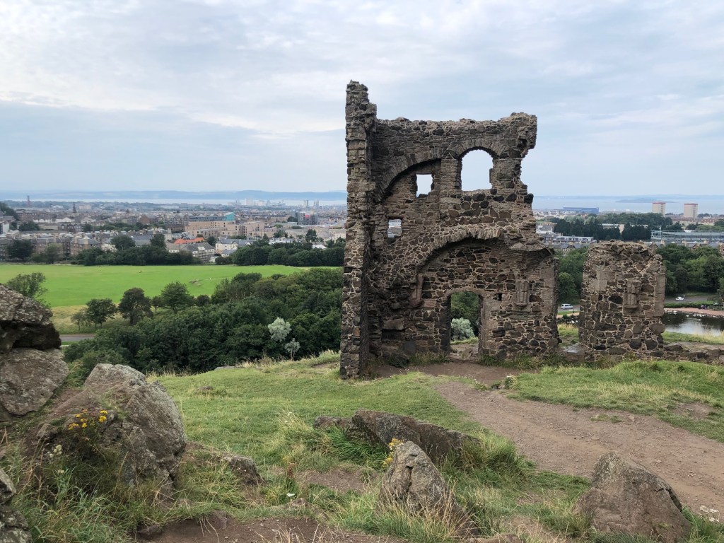 Another thing we did on our mini adventure was visit Holyrood park. This “park” is but a monolith! With imposing hills and high-above cliffs, it is like a wall protecting and framing the old city. If you are in need of a new Christmas (or other holiday) card, go here! You can get stunning views of the city from on top of the peaks. You can also see the ocean and ancient ruins here. If you’re more natury, this is definitely a good location for a long hike.