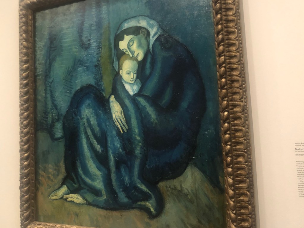 I started my adventure in the European art room. The walls were lined with famous impressionist artists including Monet, Manet, and Van Gogh. In a bit of a sad mood today myself, I naturally gravitated towards the darker paintings. I stared for a bit at Picasso’s “Mother and Child,” a large work painted during his “Blue Period.” Even Degas’s depictions of young dancers in his work “The Rehearsal” takes on a somber tone when one considers the dark dance studio and the blank-faced ballerinas.