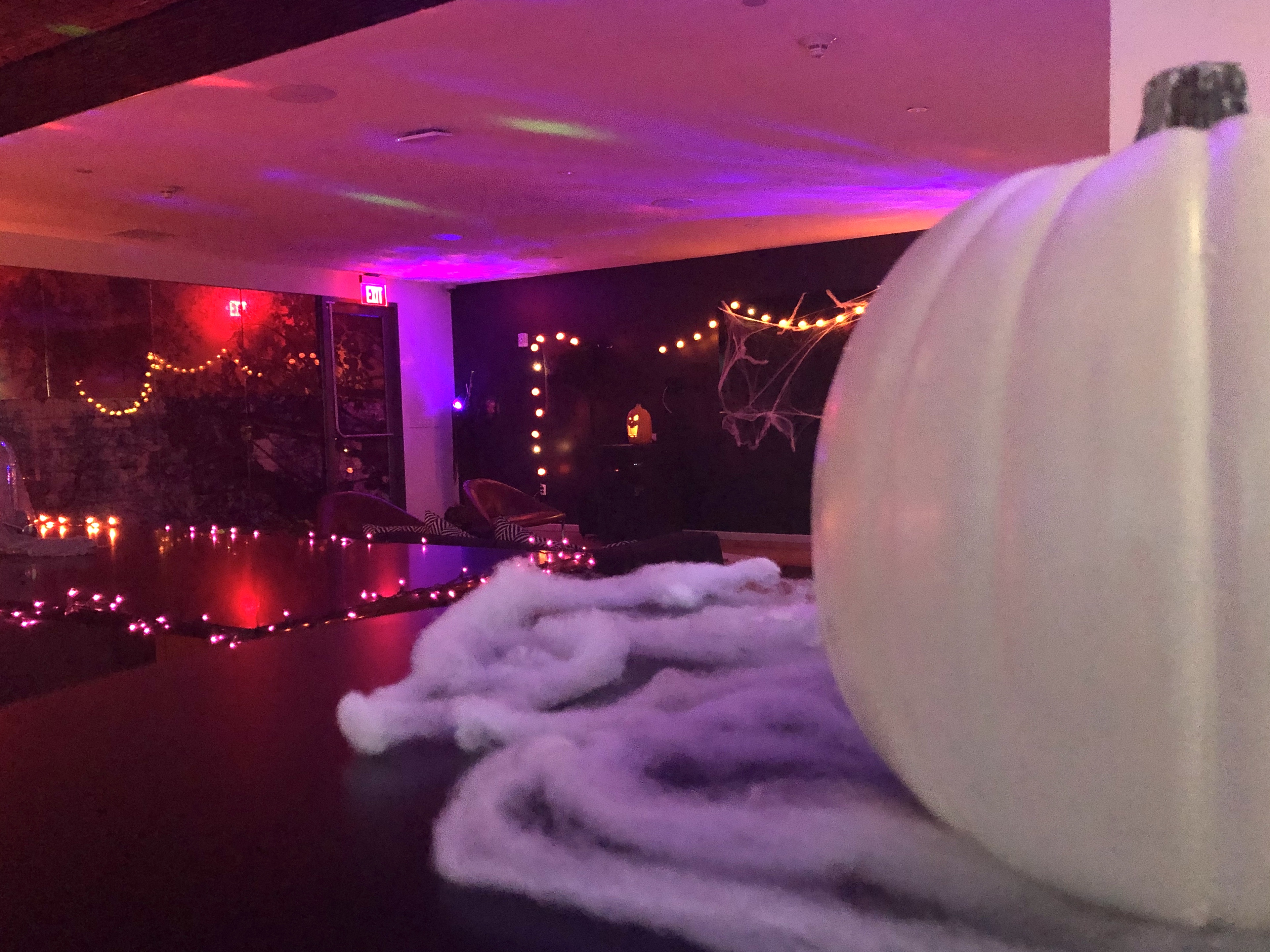 Today, my job took me to a Halloween party at an apartment building in Cambridge. Upon entry into the lovely modern lobby, my team was ushered upstairs to the community room. The area was decked out from floor to ceiling in cobwebs, lights, and other spooky touches. This building certainly went all-out for the holiday.