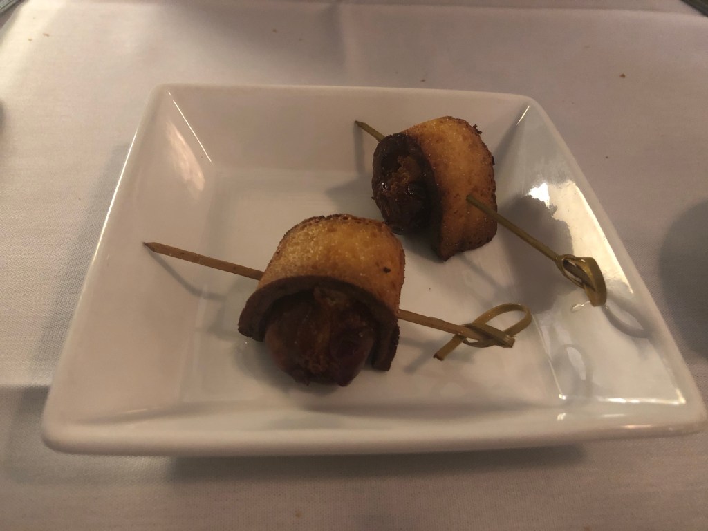 My honest first impression was that the dishes were rather small—fancy but “French” sized. My boyfriend ordered the Devils on Horse Back as an appetizer, which were two dates, wrapped in tofu, and topped with cashew “cheese.” The “small plate” was in fact two bite-sized pieces. The server described the small plates as ‘appetizers,’ however, in my opinion, this would only be a suitable appetizer for a single person. The fettuccine was flavorful with garlic, vegetables, and tasted slightly cheesy without any real cheese.
