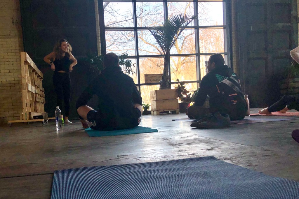 This past weekend, I attended two yoga pop-up events and both involved beer. The Saturday event took place at Remnant Brewery in Somerville. Tickets were $10, which included an hour-long guided session (beer cost extra but was available on tap). The room was filled with 20-something year old women, with a few older individuals, and a small constituency of men. During our session, Andrea, the instructor, led us through a series meant to target the leg muscles involved in running. With the Boston marathon coming up next month, Andrea received a flurry of requests for IT band and glute stretches. As a newcomer, it was easy to follow the sequences and poses, yet some of the moves were a physical challenge. The stretches and stances pushed me to stand on my hands and feet until my triceps burned and pulse my leg up in the air until my muscles felt weak. It was a good experience overall and I would certainly consider going back!