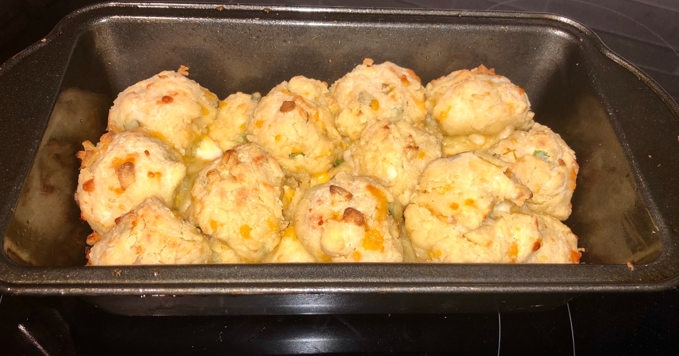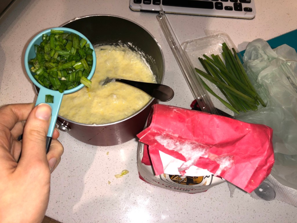 I was eager to try out cooking some Irish dishes in honor of the event, however, to be totally honest with you, I couldn’t find it within myself to get excited over boiling cabbage and potatoes. Instead, I took the holiday as an excuse to just cook something. I ended up making savory “muffins” with cheddar cheese, garlic, and chives. With ongoing shortages at the grocery stores, I had to make more than one trip to the markets to acquire all ingredients. The bread was rather simple to make, but because I did not have a muffin tin, the muffins turned out to be little blobs, which tasted…edible. Well, I tried!