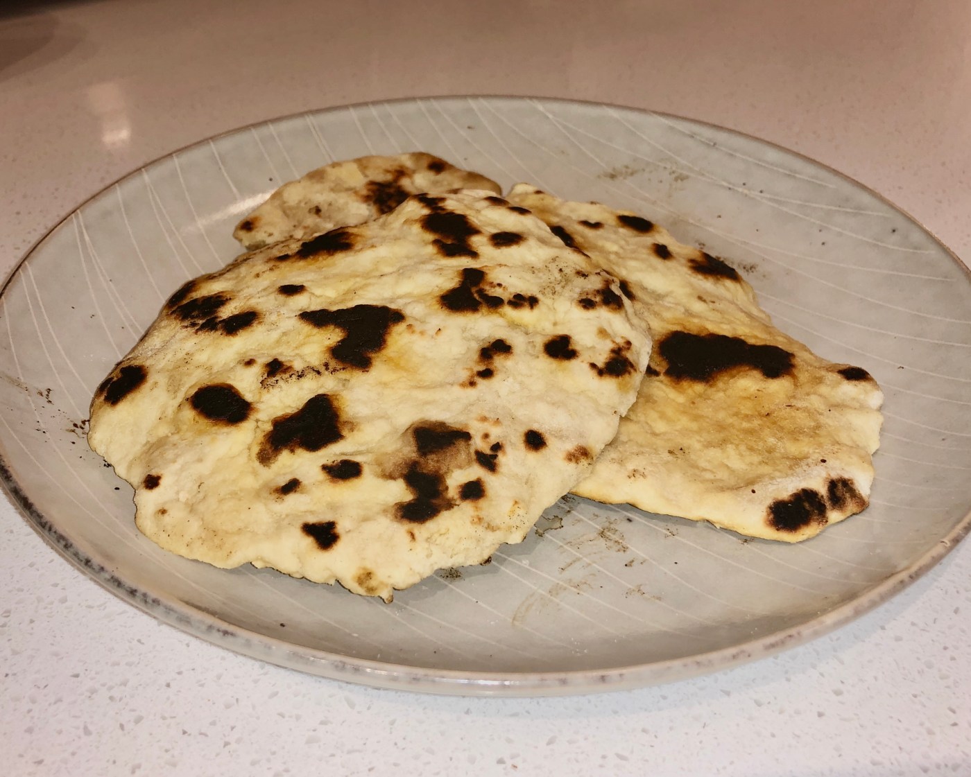 The final product looked a little dopey in comparison to the model that I found on the cooking website. Where the example bread was tan and lean, mine was thick, pale, and splotchy. However, such as with people and books, the quality of flatbread is found on the inside. Despite my haphazard substitutions and mad dashes to the window to let out pillowing smoke, the bread tasted delicious. It was so good, in fact, it surprised even me that the dish was made on a whim. Making flatbread was delightful! The bread is the slightest bit salty with a light garlic flavor. It goes great with a little butter, hummus, or more decadent savory toppings. For me, the taste of the bread on its own was just right.