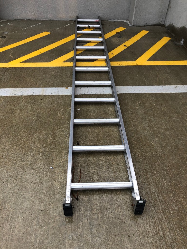 On the top level of the parking garage, I found a ladder lying flat on the ground. I immediately thought back to football movies, where the protagonist is seen agilely weaving his feet through a rope ladder strewn across a green field. With this being a real, metal ladder, the spaces between the rungs were not very wide, however, I tried to perform the foot weaving maneuver regardless. I was tempted to look up on YouTube “how to run through a ladder,” but I impatiently decided to wing it. At first, I started moving laterally across the ladder no faster than a walk to avoid falling; the motion was really awkward. However, as I gained my footing, it felt like I was performing a dance. In fact, I got so into skipping through the ladder that I played a song on my iPhone and danced, jumped, and leaped across the metal piece for about 3.5 minutes.