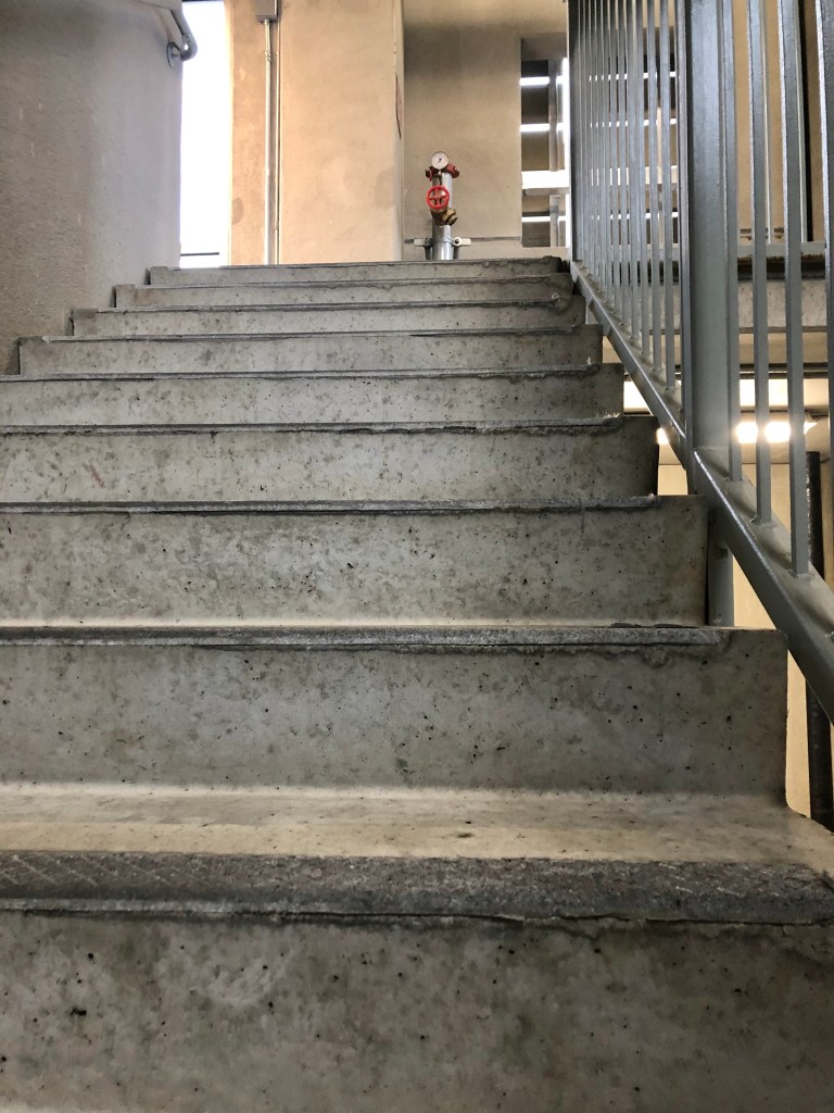 Of course, the parking garage is well equipped with a mountain of stairs. Fortunately, this building had an elevator, which made it easy to climb up and ride down.