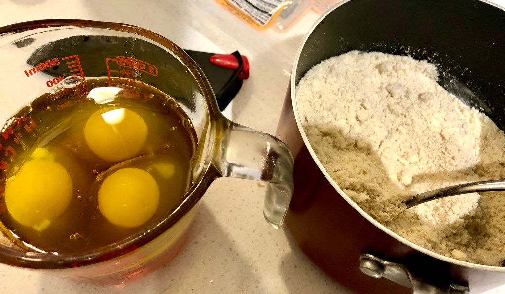 If you are looking for an almond flour recipe—I highly suggest the gluten-free one that I found. Baking gluten-free can be a challenge at times, however, the recipe that I followed was simple and even gave the option to only use three eggs (most almond flour recipes require 5 – 6!), which is helpful when you are sparing with your egg supply (during the time of the coronavirus pandemic).