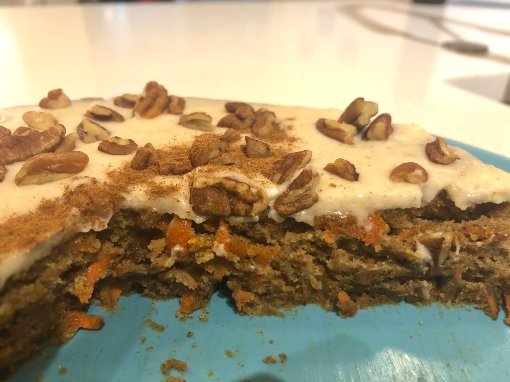 I ended up making the “healthy” carrot cake recipe. The taste and texture was…um…less decadent than I would want from a cake, but it was still nice and sweet tasting. I think I would have preferred a cake with all-purpose or wheat flour though, as the almond flour made the cake really crumbly.