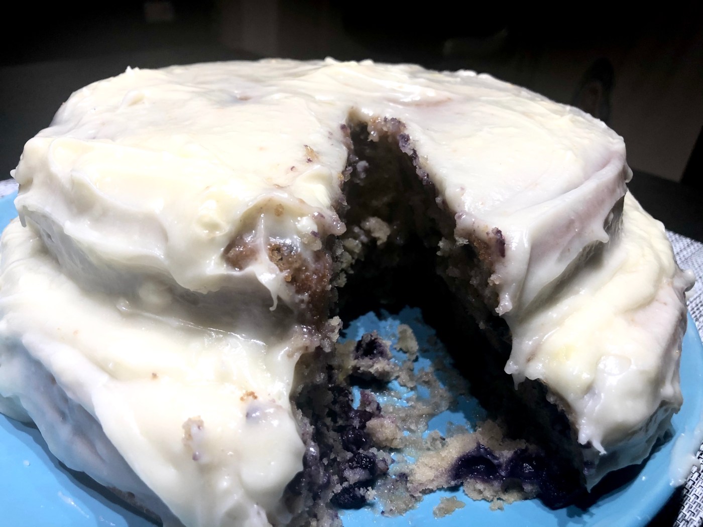 When baking a cake, timing is unduly important. For example, the amount of time you spend whipping cream is an important factor in how fluffy your frosting will become. Also, allowing your cake to cool completely before frosting and chilling it before serving will add disproportionately to the flavor and consistency of many cakes. For example, in the two-layer lemon blueberry monstrosity that I attempted in Exhibit A, the top layer almost slid off completely as the warm cake started to melt the frosting into a ‘slippy’ mess.