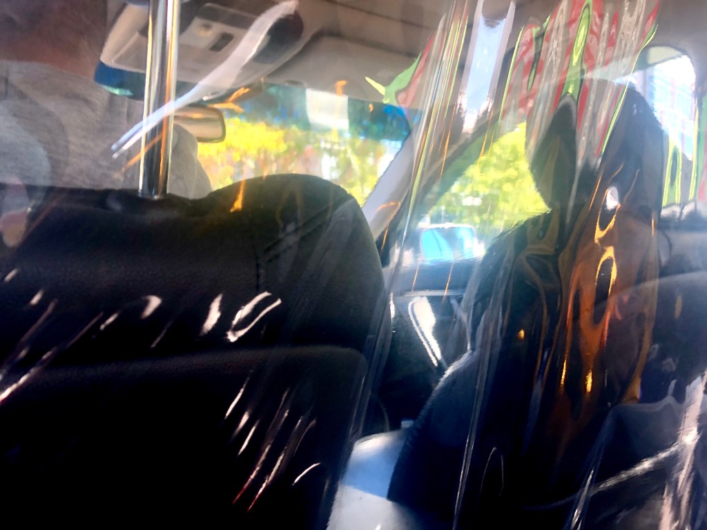 Due to availability, we ended up journeying to Waltham (a suburb of Boston) via Uber to pick up our rental car (about 20 minutes out of the way). In the age of COVID-19, any form of shared transportation can be risky. While an Uber in these conditions is not perfect, it amused me to see a rigged-up plastic divider separating the driver and passenger.