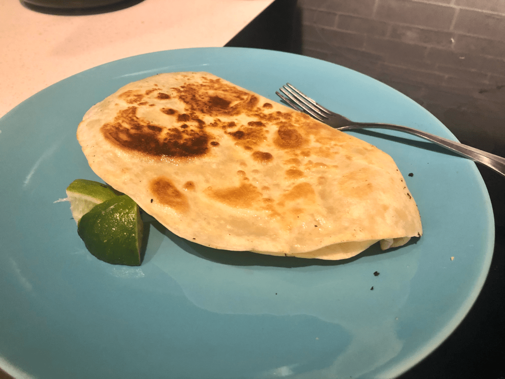 The next day, I decided to make the quesadilla and was irrationally dismayed to see a bag full of ingredients rather than something already resembling a quesadilla. I’m a lazy cook and was harboring a secret hope that the dish was already 90% completed — but no. Instead, I found a whole pepper, limes, garlic, onion, as well as few other supplies waiting for me in the bag. While most everything is provided, some little items like oil and butter and, of course, kitchen appliances are not included.