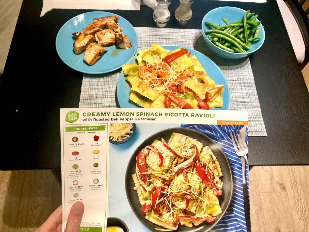 Once I redeemed the gift card, I went online to choose my three meals. There were a variety of colorful options, however, I stuck to fish and vegetable ones. I ended up going for the “Hey, Honey! Salmon,” “Creamy Lemon Spinach Ricotta Ravioli,” and a quesadilla dish (the name of which I forget). The dishes are pre-constructed and made for 2 or 4 people. There isn’t any real flexibility to edit the dishes, but there are a few add-on side dish options for an extra cost. I checked out and the order was due to arrive in the middle of the next week.