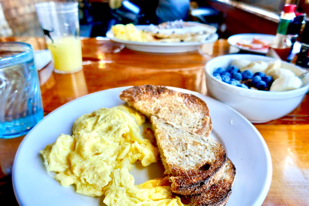 After having breakfast at The Black Dog Tavern, we were truly at a loss to find other morning meal destinations. Oak Bluffs, the island town known for its bars and restaurants, showed a surprising dearth of dine-in options. On Google Maps, the red markers showing the restaurant locations were too often accompanied by the words “temporarily closed” (for the summer season that is), and “take-out only” (for the virus). In fact, on the day that we were there, we could literally only find one brunch option that was open for dine-in service in the town — a new place called “The Pawnee House.” It turns out that the place had the misfortune of opening smack in the middle of pandemic in August 2020. If you crave sugary treats, Dear Reader, and believe me that I do, you can satisfy yourself with any of their (very large) French toast or pancake offerings.