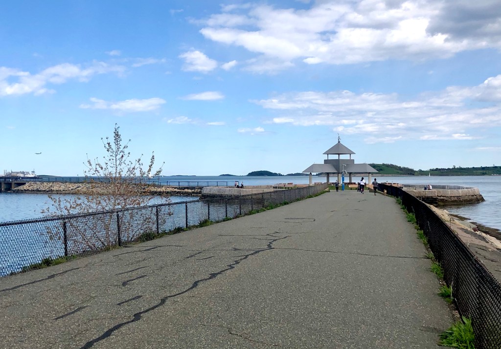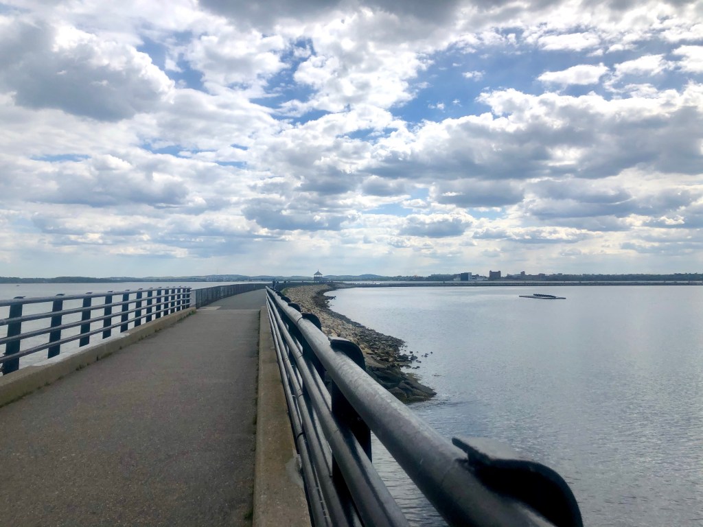 Moving east past Carson Beach, there are a few yacht clubs as well as a children’s park and green space. At this point, one is right by Pleasure Beach and Pleasure Bay. From here, one can walk around the bay via causeway (aka a land bridge). The water is eye candy and the shades of blue from Pleasure Bay to the north and Dorchester Bay to the south and the blue sky are all brilliant and inviting.