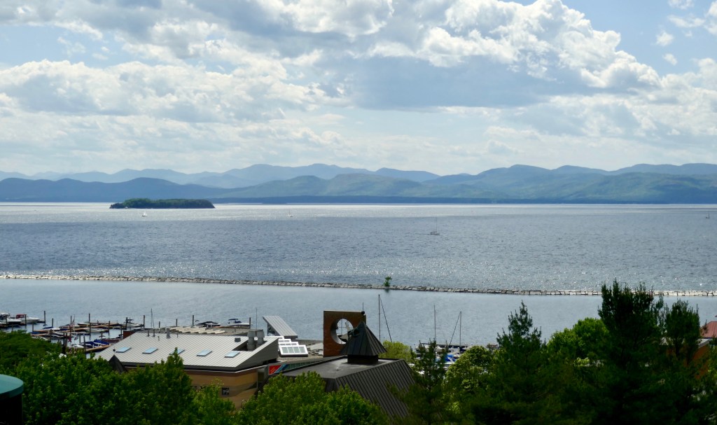 Burlington does not have a flat horizon, instead is has a beautiful mountainous backdrop. The mountains encircle the city like an embrace. From this side of Lake Champlain the closest mountains are a dark greenish-blue in color and further away they become paler and more indistinguishable from each other. From our vantage point, we look west toward New York state with the furthest grayish-blue mountains sometimes blending in with the cloudy sky. Additionally, there are plenty of hiking options (including Ethan Allen Park located within the city) to check out.
