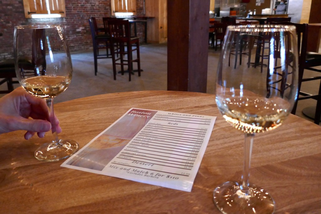 One thing that I have come to appreciate about such events is that you get to learn a lot about the product that you are sampling. However, at the Boston Winery, even though the venue wasn’t that busy (it was just us and three other parties), the host was very rushed in all of his explanations of the wines. Additionally, he would often begin pouring one of us the next wine even before the other had finished the current wine. Aside from the general haste, it was a pleasant experience overall. While none of the wines were “mind blowing,” the selection was nice and tasting some locally-produced wines was a fun experience.