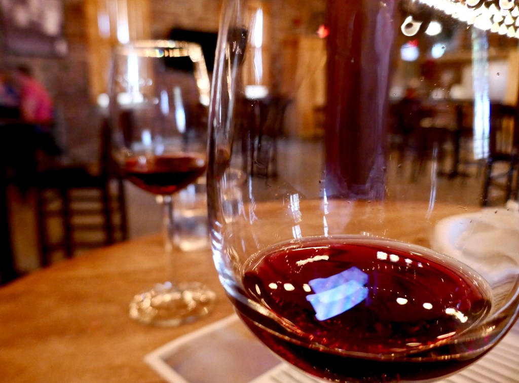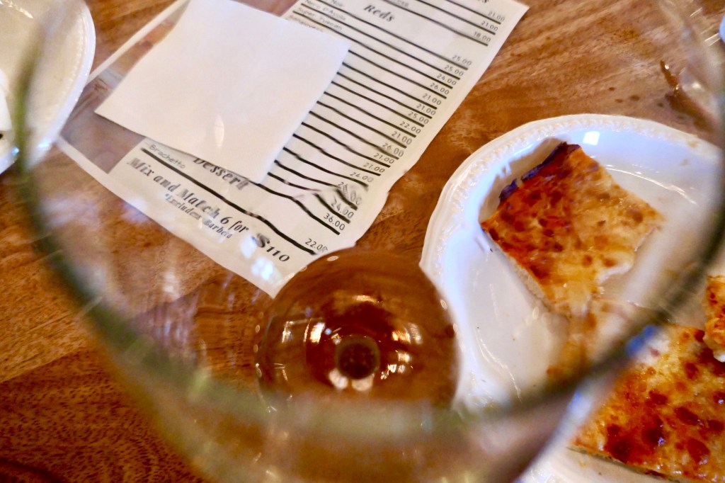 In the age of the pandemic, we were unable to do a tour of the small building, however, we were seated immediately upon our arrival. For $18, our wine tasting included the sampling of five wines, as well as some plain cheese pizza.