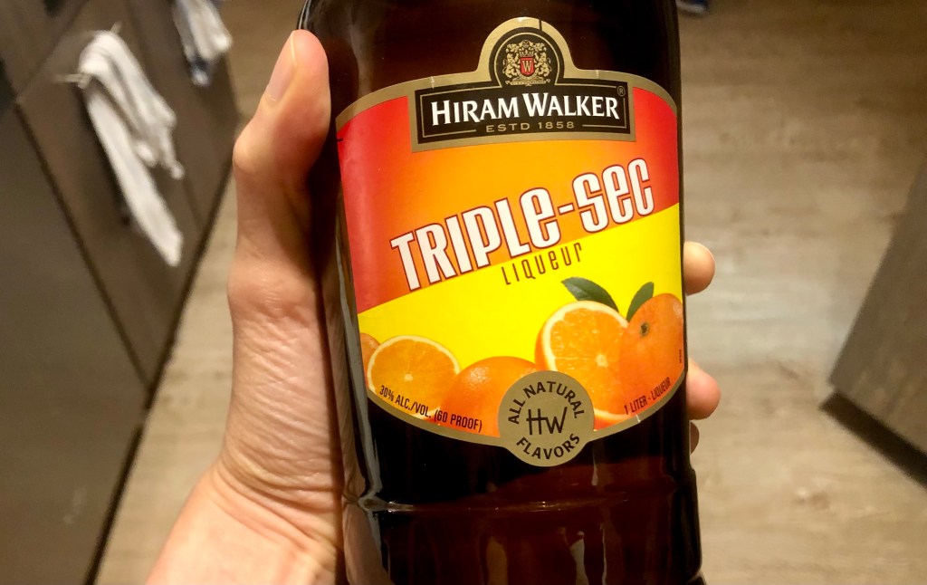 - Add the bottle of white wine, orange juice, and your liquor or “fruit-flavored liqueur” to a pitcher