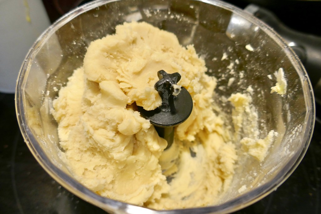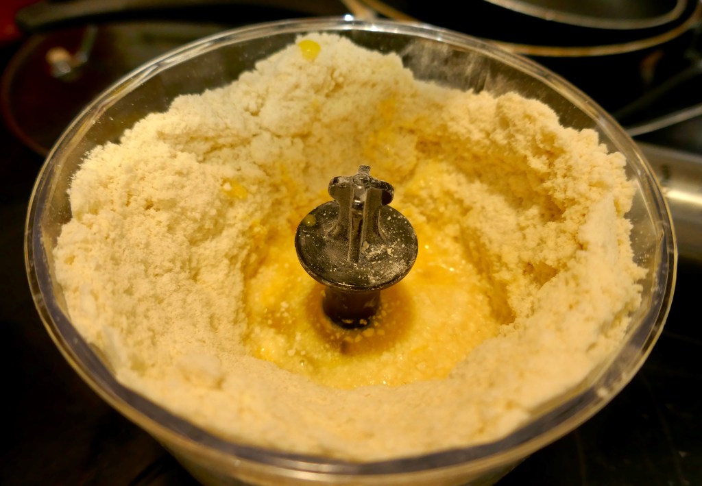 - Add the egg-water mixture into the food processor. Pulse until the lumps become dough.