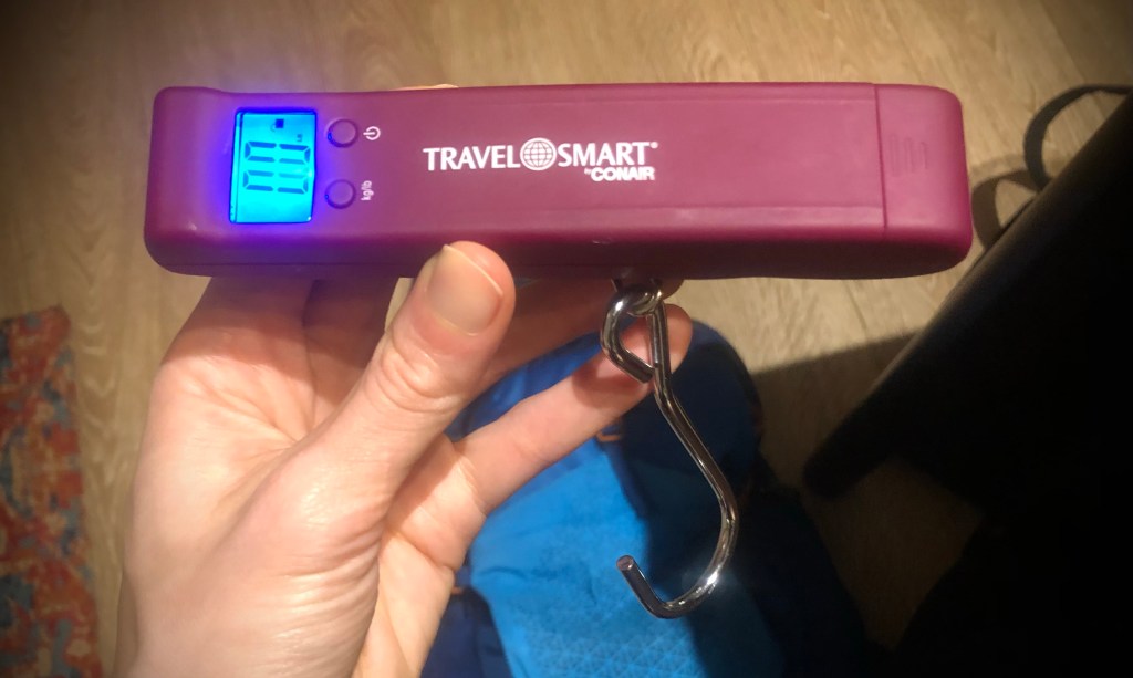 Pro-tip: Use a luggage scale before you leave. Simply hook your bag onto the scale and lift it up to see how much your suitcase weighs (it could save you some hassle at the airport!).