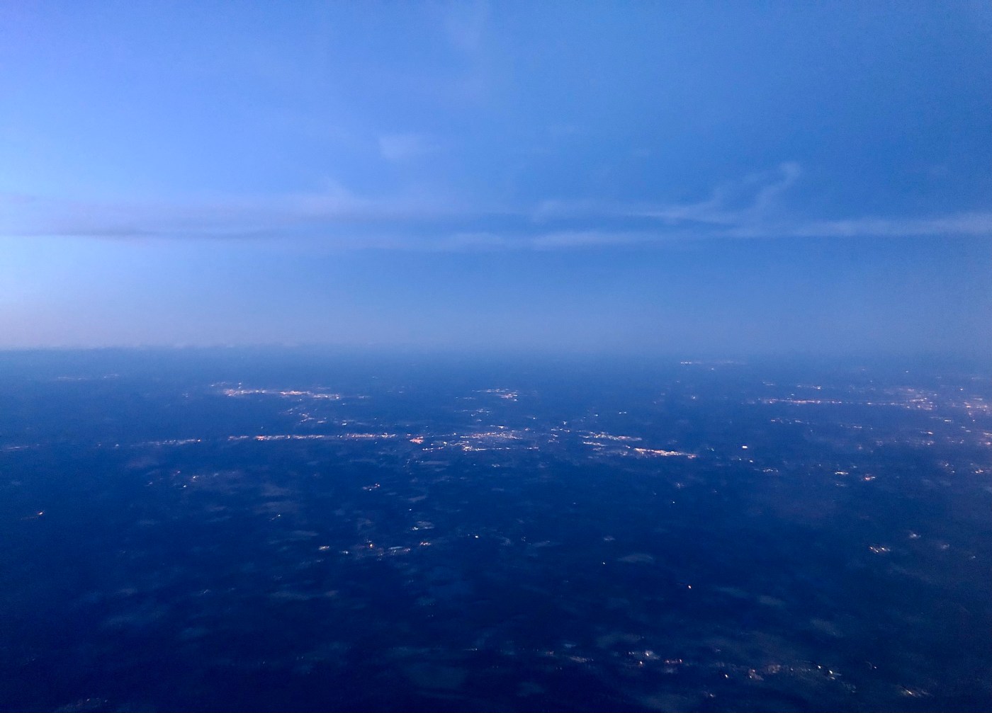 On a short plane ride from Syracuse, New York to Boston, we were flying west to east around sunset. With the orange, yellow, and pink glows of light behind us, we were racing toward the deep blues, indigos ahead and the murky black waters below. The plane was free from conversation and the only sound was the roar of the engines. It was a smaller plane with only three rows, which meant that the glow from the port-hole windows were near to all passengers. Closer to touchdown, somehow, we were approaching the Boston Logan International airport from the east (despite coming from the west), which meant that the plane was speeding from the dark bay toward the glow of the city below (a speckling of orange, yellow, and white lights) that provided further contrast between civilization and the watery depths underneath us.
